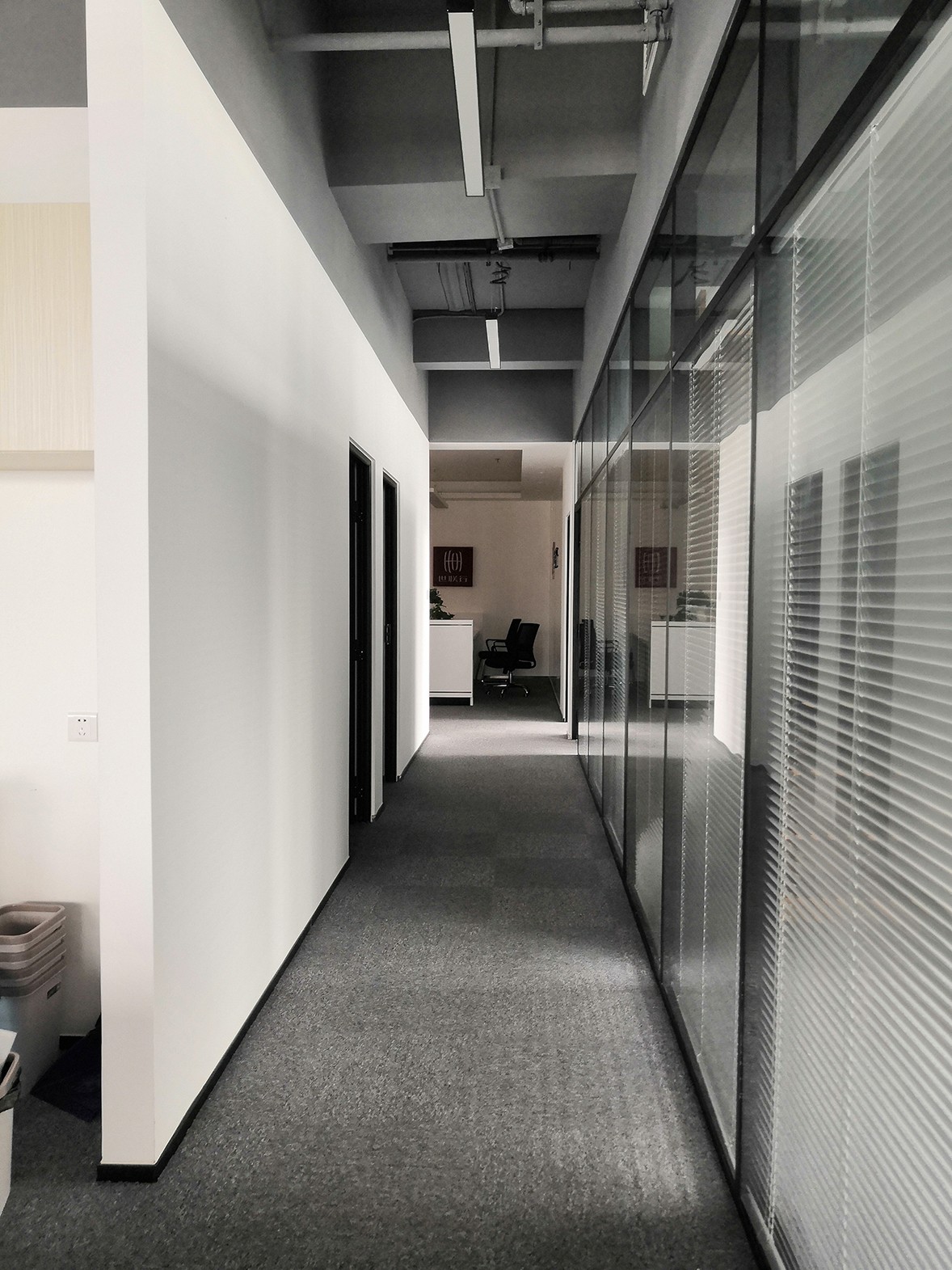 This case is positioned as a modern and simple style. The overall hard decoration uses black, white and gray as the main color, and warm wood color as the main axis, which makes the overall space more warm and comfortable, subverting people's stereotype of the cold and jerky workplace, simple and neat. The design makes the space more spacious and transparent, shaping the charm of modern style. The glass partition is made of warm wood combined with simple and bright white transparent glass, which not only increases the indoor permeability, but also increases the color temperature of the space. The irregular spacing is deliberately separated to show the beauty of patchwork and make the space have a rich and diverse texture. Appearance is not dull and tasteless because of the same material. The open working space stimulates the interaction and creativity of employees, and increases employees' sense of corporate pride and belonging.